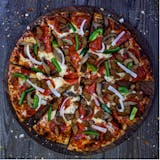 Pepperoni, mushrooms, green peppers, onions, Italian sausage and cheese on our traditional pizza sauce.