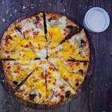 Pepperoni, tender ham, fresh bacon, savory Italian sausage, beef and our pizza cheese blend on our traditional pizza sauce.